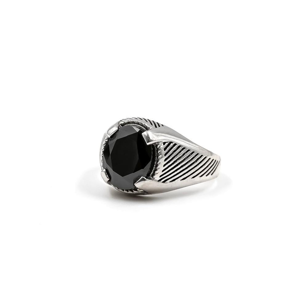 خاتم رجالي زركون أسود – فضة استرليني 925 بنقشة مختلفة