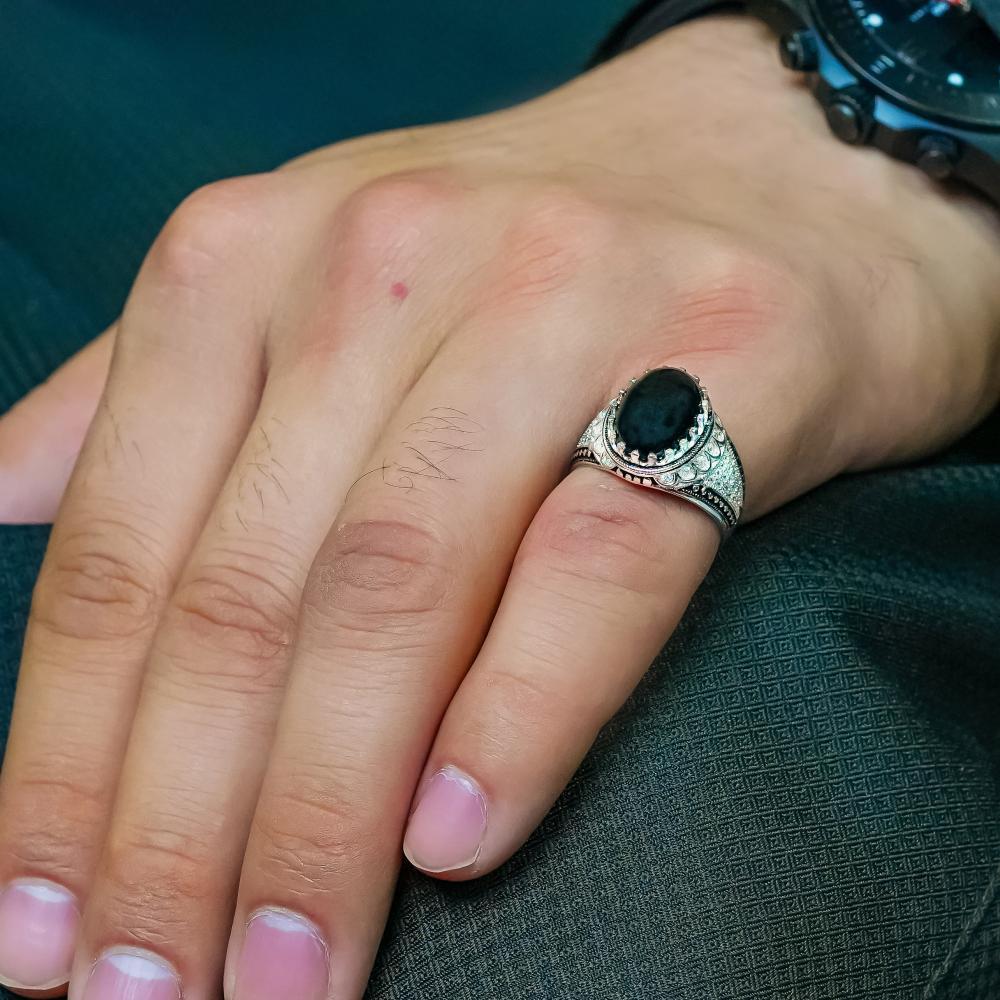 أبرز حضورك مع خاتم فضة رجالي عيار 925 بعقيق أسود بيضاوي كبير. إطار مسنّن يعطي مظهراً قوياً، مع ترصيع جانبي لامع ونقشة أنيقة على الساق. مصنوع من فضة استيرلينغ خالٍ من النيكل والرصاص ومناسب للبشرة الحساسة، مع ضمان مدى الحياة على تغيّر اللون. لقياس دقيق قبل الطلب يرجى التواصل معنا.