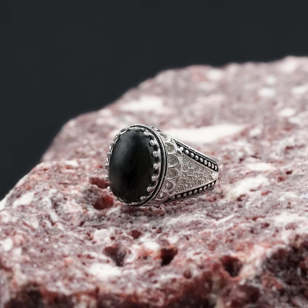 - حجر: عقيق أسود طبيعي (أونيكس) بيضاوي