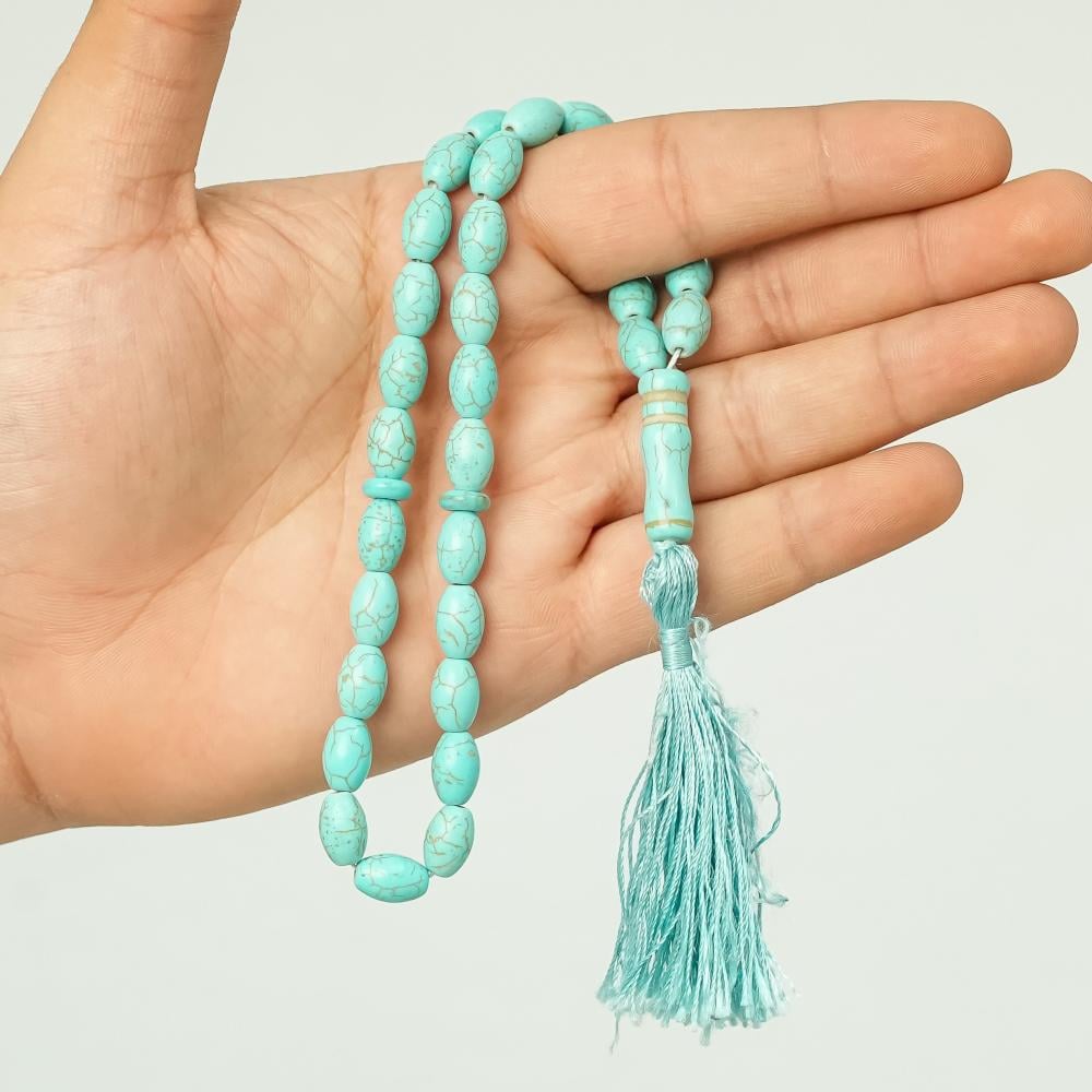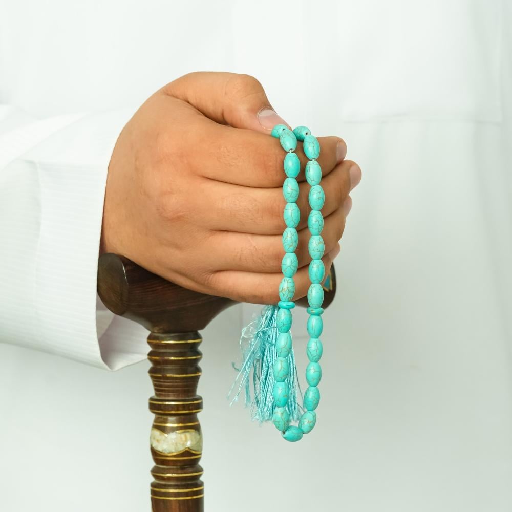 ختبر هدوء اللون الفيروزي مع سبح فيروز بـ33 خرزة مستديرة 10 مم لعدّ سلس وإحساس مريح في اليد—لمسة أناقة تكمّل اكسسواراتك.