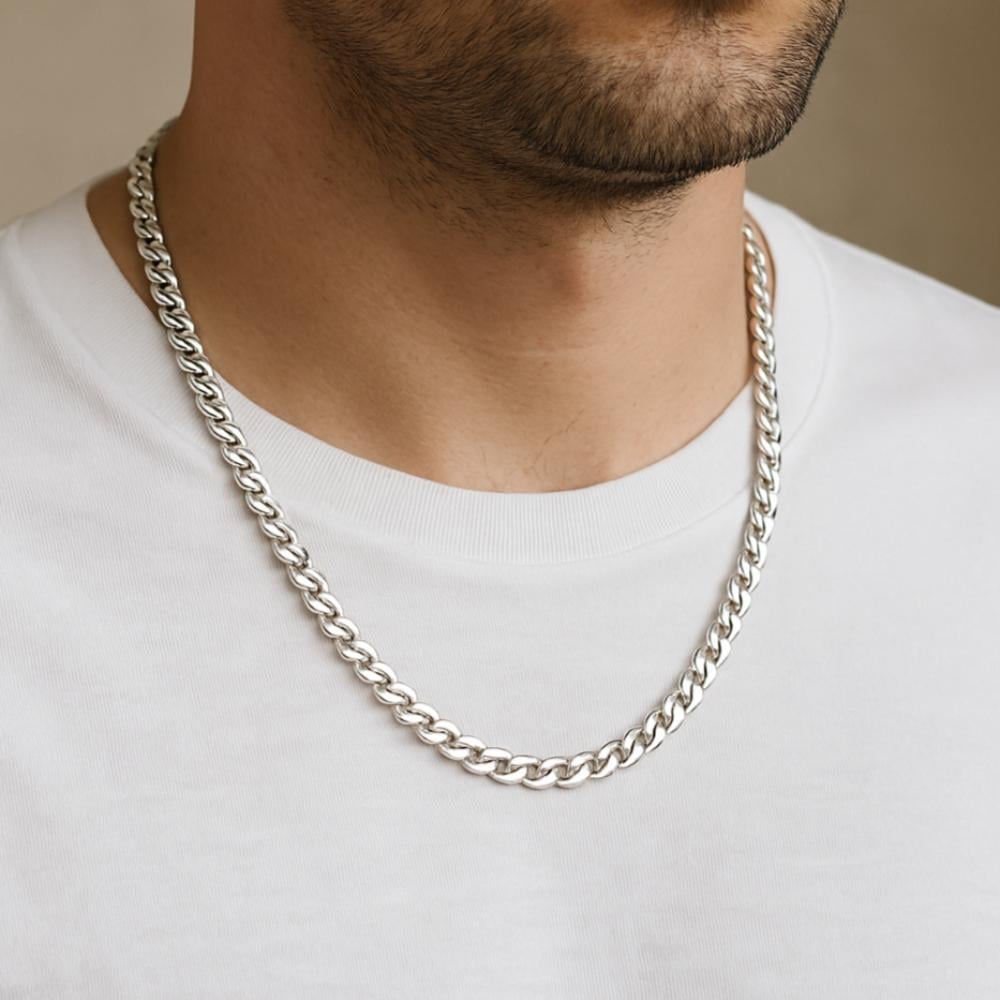 ميّز إطلالتك مع سلسلة فضة رجالية عريضة عيار 925 بتصميم رابط كوبان/كيرب السميك. حلقات مسطّحة متداخلة تعكس لمعانًا مرآويًا جريئًا يناسب المناسبات والاطلالات الرسمية. مصنوعة من ستيرلينغ سيلفر عالي الجودة، غير مسببة للحساسية وخالية من الرصاص والنيكل مع ضمان مدى الحياة ضد تغيّر اللون. تصلُك بتغليف فاخر مع كرت إهداء—خيار فخم لهدية لا تُنس
