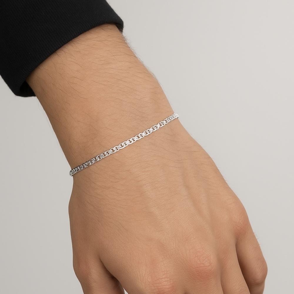 جعل إطلالتك أنيقة وبسيطة مع سوارة فضة رجالية رفيعة 925 المصنوعة من ستيرلينغ سيلفر أصلي مختوم. تصميم مينيمال ناعم ومريح للمعصم، مضاد للتأكسد وغير مسبب للحساسية وخالٍ من الرصاص والنيكل؛ مثالية للاستخدام اليومي أو كـ هدية فاخرة. تأتيك بلمعة ثابتة مع ضمان مدى الحياة ضد تغيّر اللون وتغليف راقٍ مع كرت إهداء.