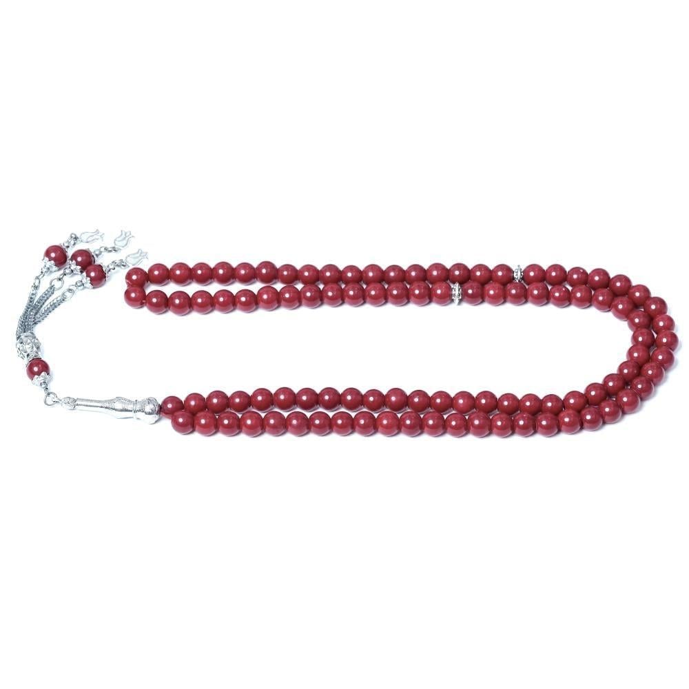 66.39 $سبحة أنيقة مصنوعة من حجر المرجان بلونه الأحمر الدافئ، تجمع بين الطابع الروحاني والأناقة اليومية — مثالية للتسبيح أو كهدية فاخرة.